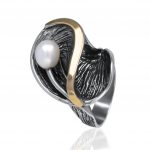 925er Silber Ring Sterlingsilber mit Goldeinsätzen 9KT und Süßwasserperle